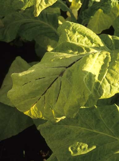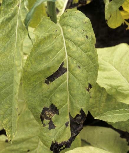 Brown to black spots observed on tobacco leaves, with examples given below, may have different origins, both biotic and abiotic