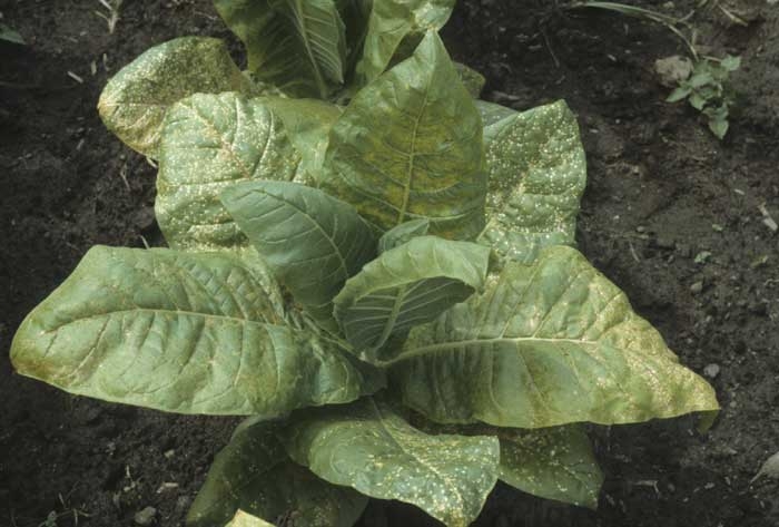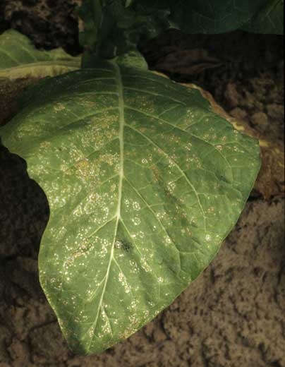 There are other air pollutants causing fairly comparable damage in tobacco, in particular nitrogen oxide (NO2) and sulfur dioxide (SO2). The latter seems to act synergistically with ozone. Unfortunately, there is no control method to cope with this non-parasitic disease. It is advised to grow least sensitive varieties in areas where air pollution is high.