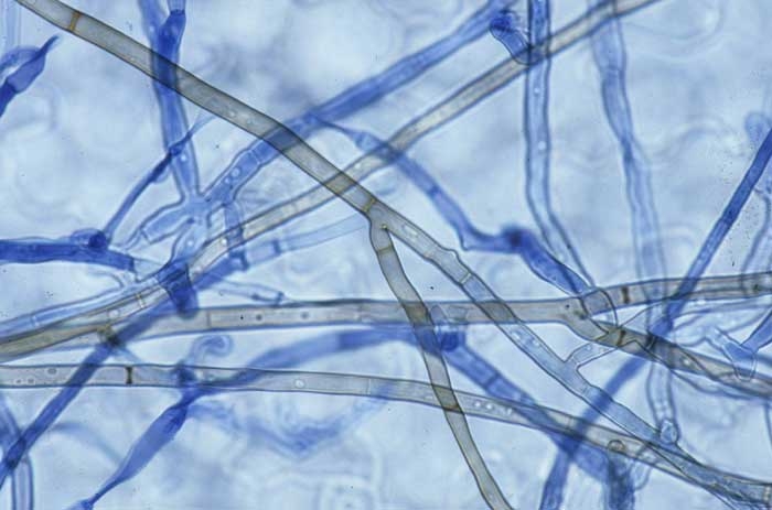 Thanatephorus cucumeris has a high saprophytic potential, allowing it to survive in soil in the absence of susceptible hosts. It can be observed in the form of mycelium and sclerotia (figure 1), often in organic matter which it easily colonises. It is a very polyphagous parasite fungus that can attack and survive on diverse hosts and on their debris. This is not exactly the case for the epidemiology of its perfect form which involves strains with a smaller parasitic spectrum. It can also be found in some soil-less growth media.