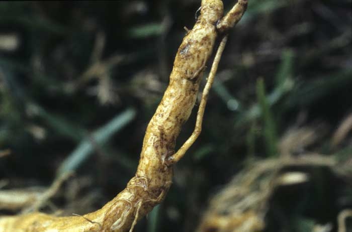 One can observe characteristic brown mycelium (figure 4) on rotten, superficially suberised "corky" roots (figures 5 and 6) of slowly growing tobacco. Is it simply a biological indicator of root systems having suffered from agro-climatic stress? Is it a fungus indicator of a “tired” soil” having parasitic potential by itself or in combination with other pests or under the influence of non-parasitic diseases? It is difficult to answer all these questions. It is certain that a number of strains are pathogenic to all the organs on which the fungus has been described and inoculated. In some cases, one can hardly imagine that the high concentration of mycelium on roots, associated with a significant pathogenicity, does not have any impact on them.