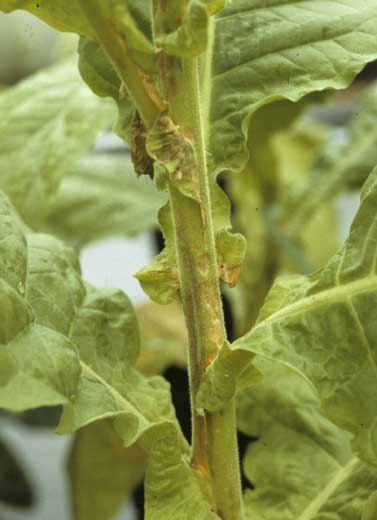 Some suckercides, when overdosed or applied under certain conditions, can burn the stem epidermis by runoff. In the days following the application numerous, irregular, necrotic lesions of light brown colour appear (figure 2).