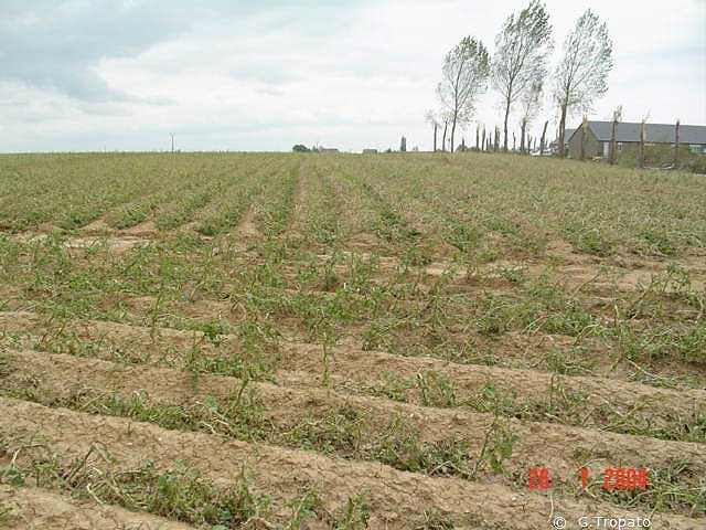 In some cases, the hailstones damage the tubers directly (sides or tops of the ridges).