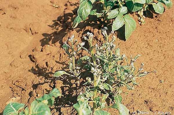The accidental application of non-selective potato herbicides may cause severe damage to potato crops: