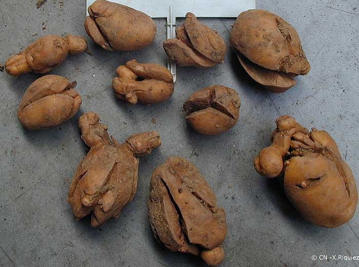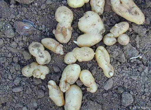 - deformed daughter tubers: certain herbicides can cause deformed and cracked tubers at harvest as well as a reduction in the number and grade of the tubers (photos 14 and 15).