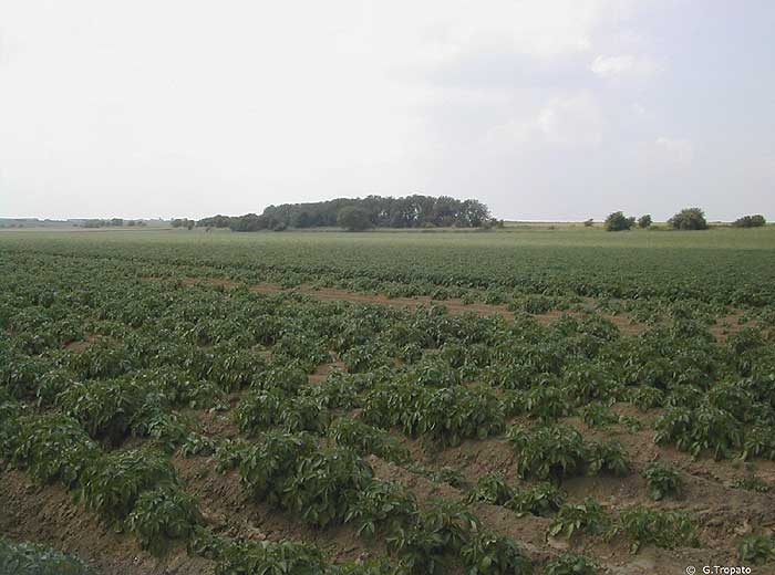 Seed tubers that hace been dampened by the rain before being planted (e.g. in the planter hopper or skip) are more susceptible to rotting pathogens. This may cause emergence losses (photo 1). Ware tubers rained on before storing may also be more susceptible to rotting.