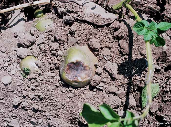 Tubers exposed to the sun and high temperatures for several hours, in the field or later, suffer from “sunburn” and take on a metallic appearance with browning of the underlying tissues (“golden blotch” or sunscald). The surface tissues dry out (photo 1) and the tubers are unsuitable for storage.