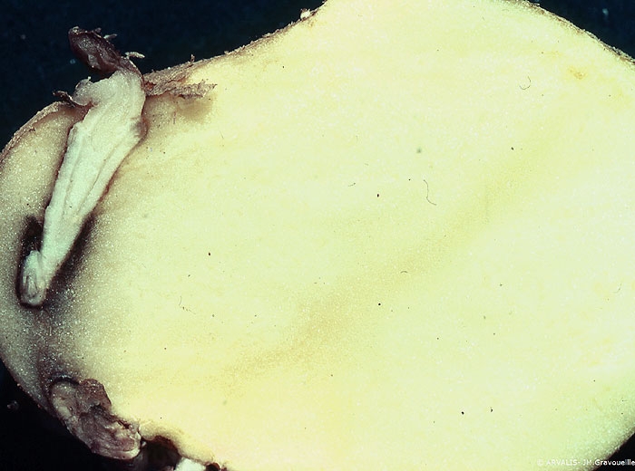 After several months’ storage at a temperature above 6°C, the flesh of some tubers may have internal sprouts (photos 1 and 2). This anomaly is due to the sprouting inhibitor (CIPC) which is inefficient when applied to tubers close to the dormancy break.