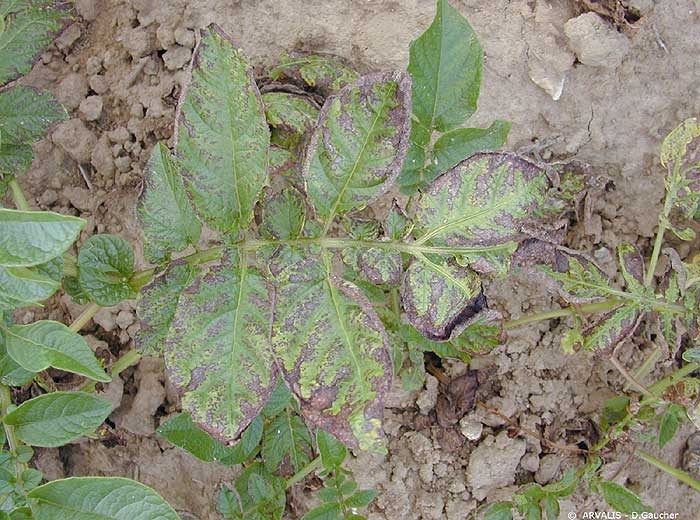 Symptoms of deficiency: the bottom leaves first present mild interveinal, pale-green to yellow chlorosis (photos 1 and 2) which subsequently turn brown and finally become necrotic (photos 3 to 5). Such lesions are not unusual on potato plants, during the last part of the growing season, particularly on some cultivars. Lesions are typically located on the central part of the leaflets, except on the veins of the older leaves (as magnesium is highly mobile in the plant).