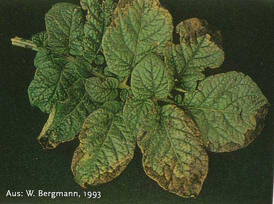 • Role in the plant: the potato needs a large amount of potassium (K), as this element is essential for metabolic functions such as the transfer of leaf sugars to the tubers and the conversion of the sugars into starch. It is also important for the osmotic potential of cells and related water balance. Potassium deficiencies adversely affect the yield, the size and the quality of the tubers. A lack of potassium also reduces the dry matter content of the tubers. Potassium deficiencies also lessen the plant’s resistance to biological stresses (diseases or pests) and to climatic conditions such as drought and cold.