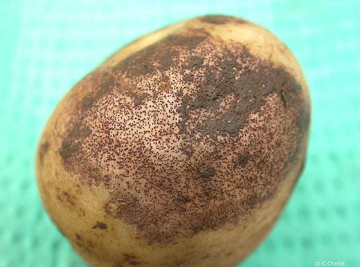 At harvest, infected tubers are collected from localised areas (the foci of soil infection), randomly dispersed in the field.