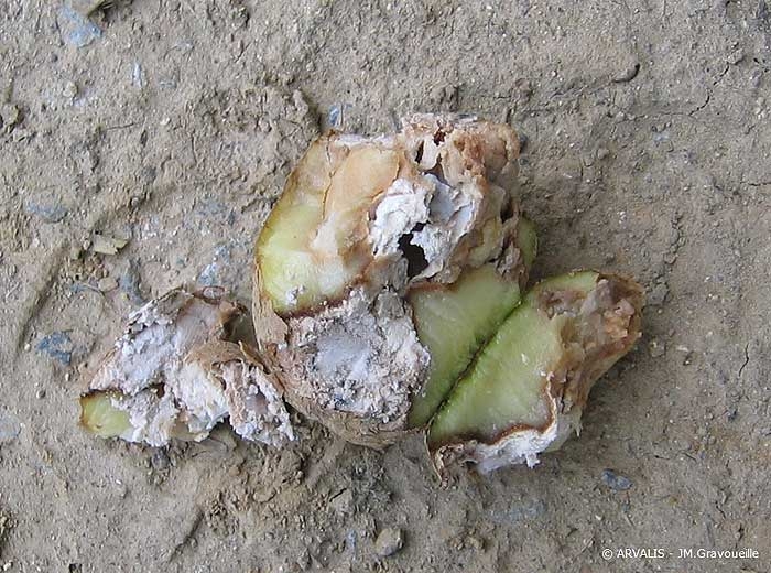 The use of colouring agents (iron perchloride, pyrocatechol) facilitates visual detection if applied as soon as the injury occurs. The lesions, which also affect the tuber flesh and take several days to heal, provide an easy entry point for different rotting agents (Phoma spp., Fusarium spp., Pectobacterium spp., etc.).