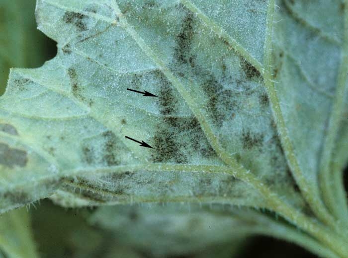 Powdery to downy, circular, white spots appearing on or under the leaves, often older and shaded (Figures 1-16.