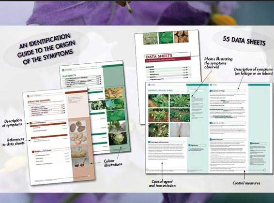 The aim of this guide, developped by a panel of potato experts, is to offer to a wide audience – producers, technicians, advisors, researchers, students and individuals – practical and accurate information on the main diseases, pests and disorders of the potato (photo 1). This guide offers a practical key (photo 2) to the easy identification of the major symptoms observed on potato crops and at harvest and then data sheets (photo 3) of potato diseases, pests and disorders.