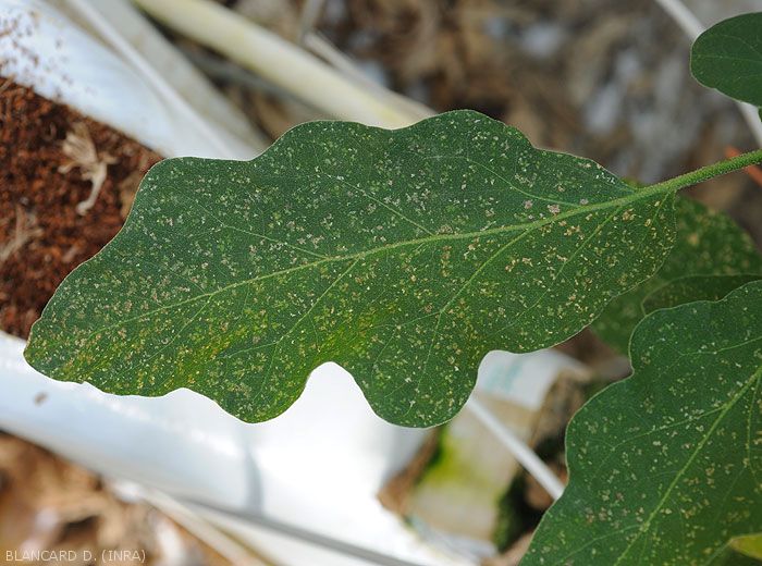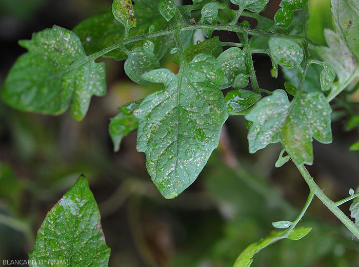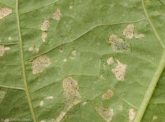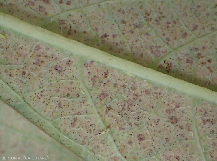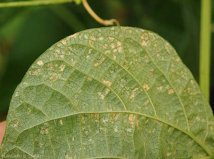 - Numerous and tiny silvery lesions, even patches of irregular size and shape appear on the leaf blade (figure ); they gradually become necrotic and take on a beigeish tint.