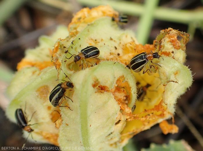 There is relatively little knowledge about this beetle, which is however very damaging to cucurbit crops in Guyana. The cucumber beetle belongs to the Galerucinea subfamily.