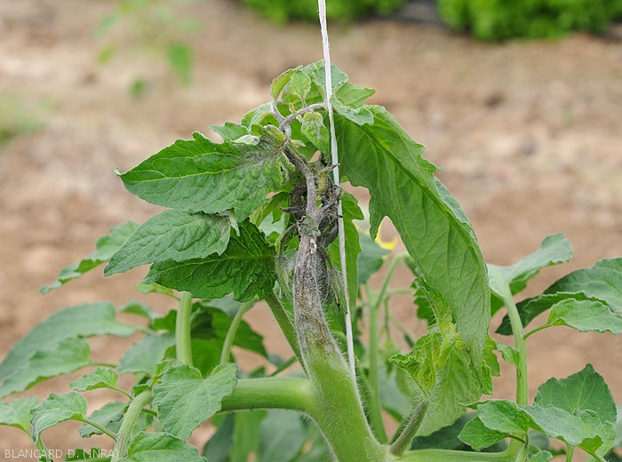 Diseased plants are distributed in clusters in the plots; When the conditions are favourable, the progression of the symptoms on the plants and in the culture is dazzling: leaves, twigs, even plants end up necrosing and drying out completely.