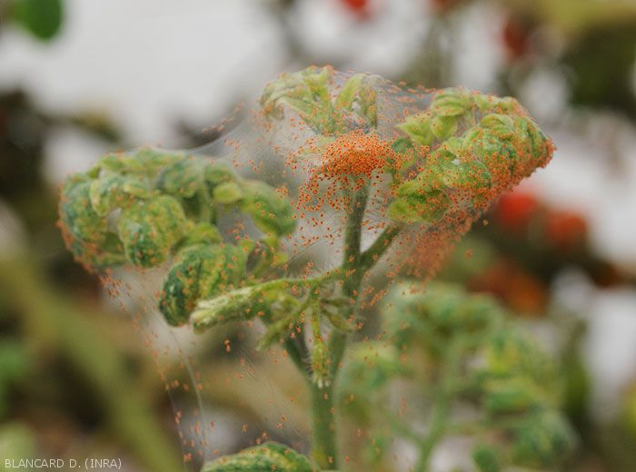 - Presence of delicate silky webs within the plant cover, on the apices, on the leaves and the fruits (figures 19 and 20).