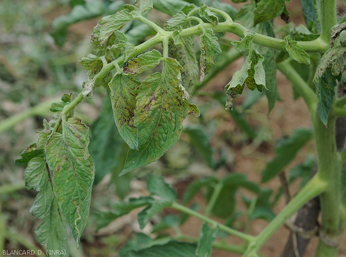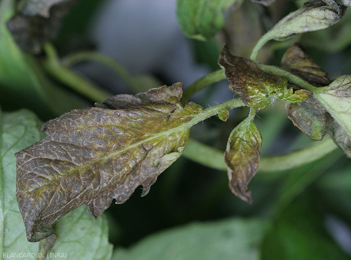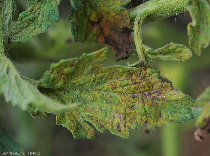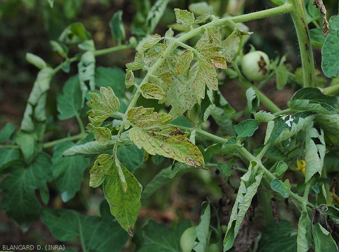 - Leaflets, rather chlorotic, gradually taking on a bronze hue (figure 7-tomato).
