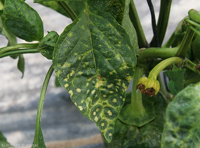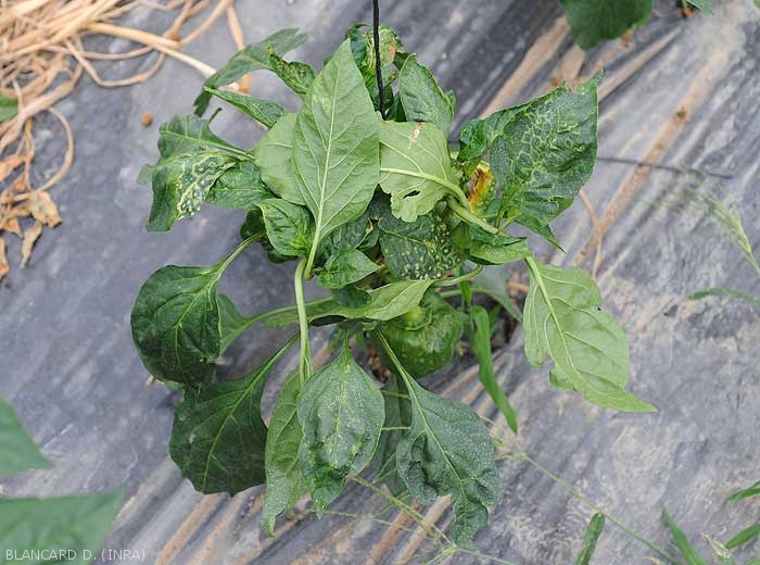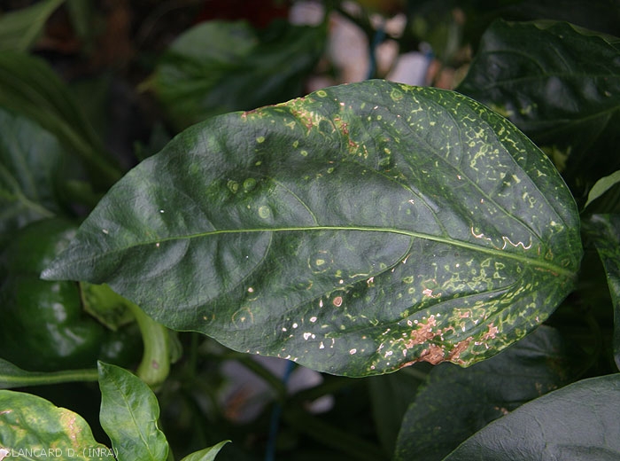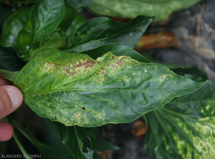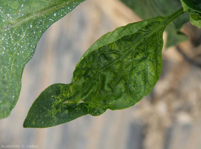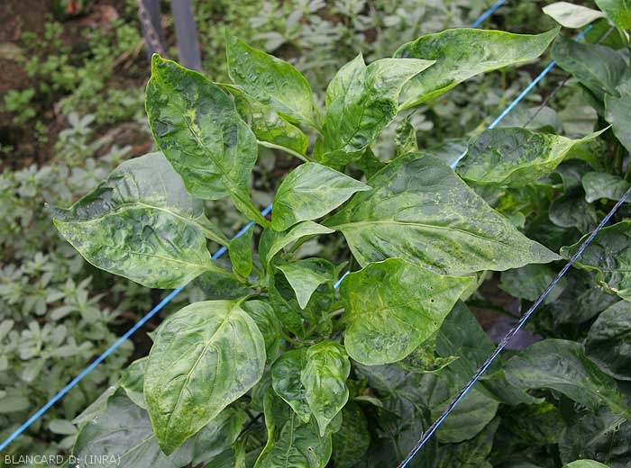 - Mosaic more or less marked on leaflets and leaves (figures 13 and 14-pepper)