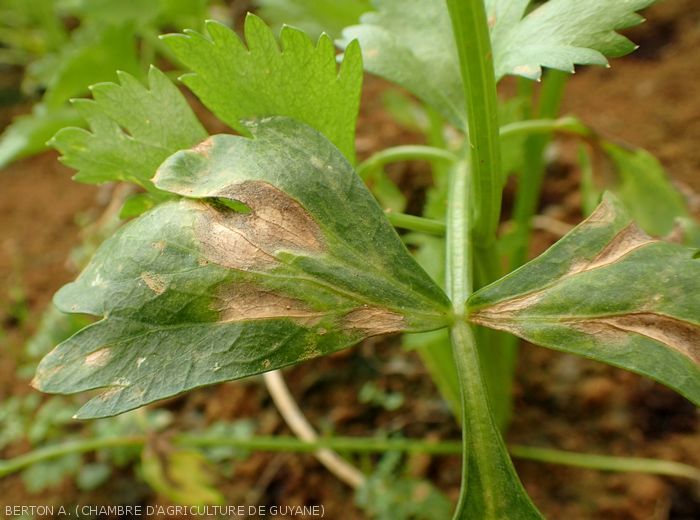 Celery Sigatoka is caused by the fungus Cercospora apii . This specific species of Sigatoka affects only celery. The other umbelliferae are not susceptible to this disease. Sigatoka is quite frequently encountered in French Guiana on celery grown in the open field or under shelter.