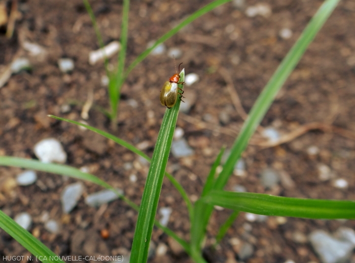 - These insects belong to the Chrysomelidae family and the Galerucinae subfamily . Note that the two beetles of the genus Candezea were associated only a short time ago with the genus Monolepta.