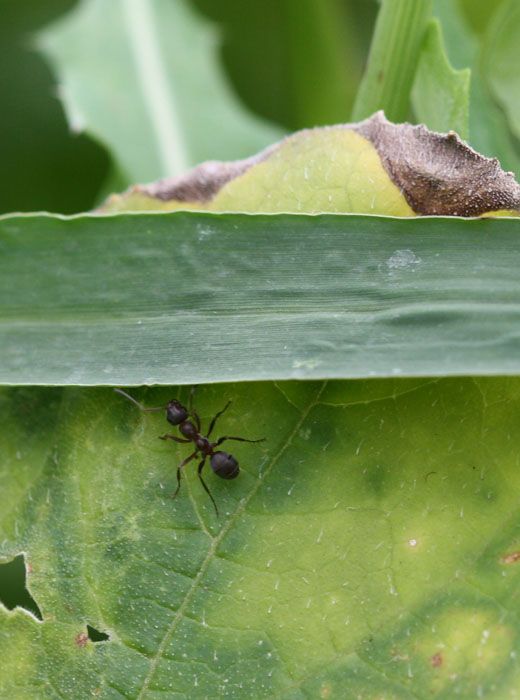Ants are detritivores that feed on organic waste, insects or dead animals. By digging galleries they contribute to the aeration of the soil. As they also sometimes feed on nymphs, ants are good regulators (like for example moths).