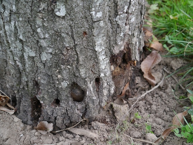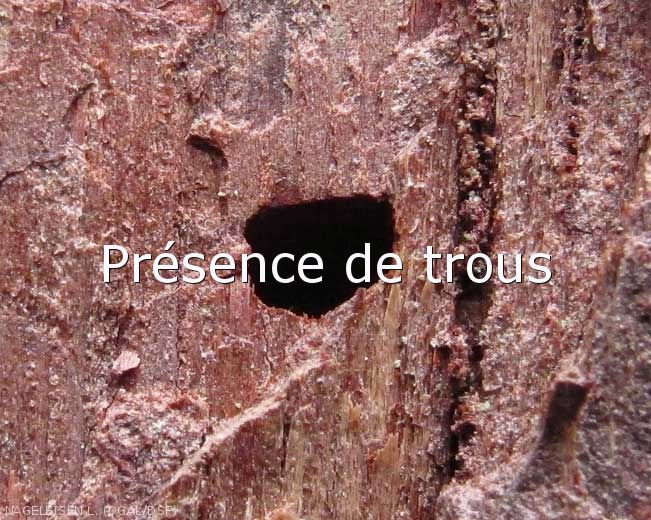 The entrance/exit holes and the presence of sawdust allow a diagnosis in favour of the presence of these insects (Figures 1 and 2).
