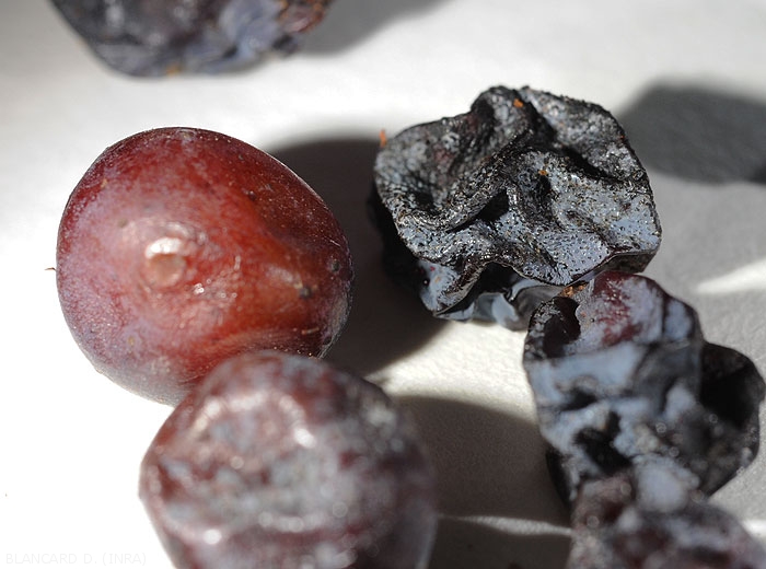 The berries eventually soften, lose their turgor and shrivel more or less; this facies reminiscent of those observed in the presence of berries affected by black rot , Phomopsis viticola , etc. (figure 2).