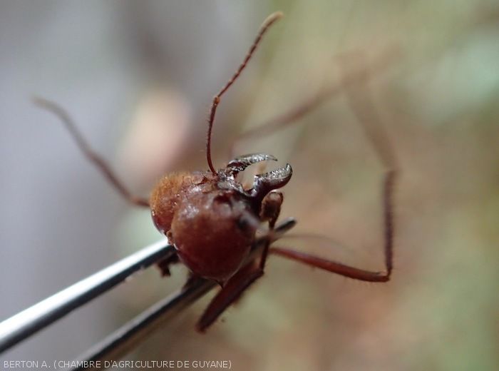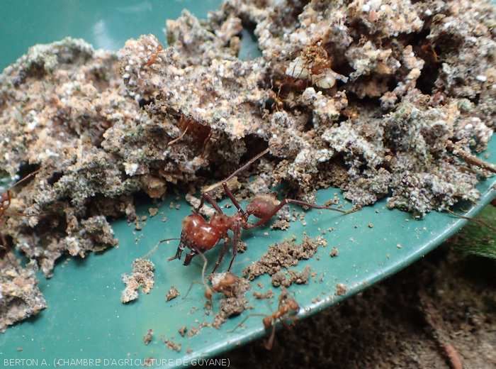 Even today, the cassava ant is considered one of the most formidable crop pests (if not the most feared) in French Guiana. Cassava ants are active throughout the year. The damage is therefore visible at all climatic periods.