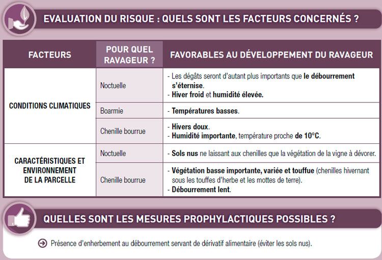 The factors favorable to the presence of these pests are presented to you in the attached table (figure 9). In addition, among the useful auxiliaries one can quote predators such as ground beetles (photo 10, beetles feeding on caterpillars on the ground), passerines and bats which consume caterpillars or butterflies, lacewings and hemerobes which attack more particularly the eggs. and small caterpillars. The parasitic wasps and flies tachinid will grow at the expense of eggs and caterpillars (photo).