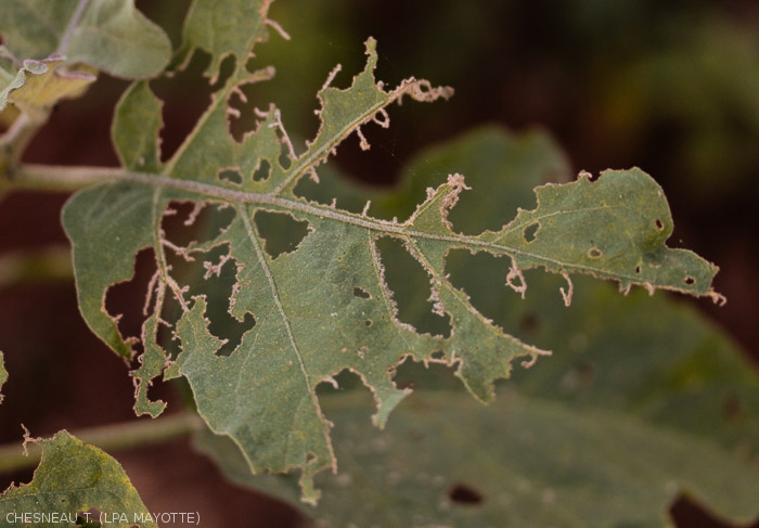 - The species is mainly observed on aubergine, not in France to our knowledge but in the French overseas departments and territories.