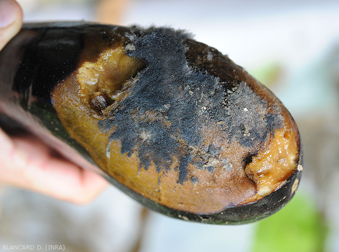 - Shows behavior on eggplant fruits quite comparable to that of Botrytis cinerea ; they can even be observed at the same time on the same fruits.