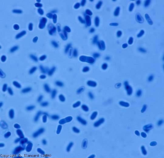D. lycopersici causes moist cankers on stems, dark brown, which often start from leaf stripping and disbudding wounds (Figures 1 and 2). These lesions gradually spread and eventually encircle the stem and / or the petioles, thus disrupting the sap currents. Ultimately, it is not surprising to see yellowing, wilting and drying out of leaflets and plant parts downstream of the lesions . On the latter, tiny more or less brown globular structures (pycnidia) dot the altered tissues (Figures 3 to 5). Note that they are more easily distinguished with a magnifying glass than with the naked eye. These fungal structures produce hyaline bicellular conidia, quite characteristic of the genus Didymella (figure 6).