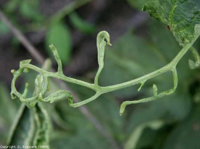 - - the more or less marked distortion and / or curling of the leaflets, which may be shorter, threadlike and present strongly thickened tissues (figure 11);