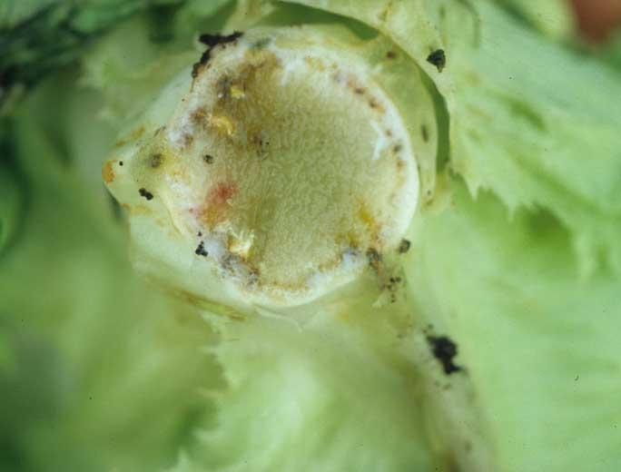 Envahis par cette bactérie, les vaisseaux de la tige et du pivot rosissent d'abord, puis brunissent (figure 1). La moelle ne tarde pas à être affectée. Elle devient vitreuse et prend une teinte verdâtre (figures 2 et 3). Une odeur nauséabonde accompagne ces symptômes. Les enzymes pectinolytiques produits par Pectobacterium carotovorum subsp. carotovorum liquéfient progressivement les tissus. Une pourriture humide, brun foncé à noire gagne d'abord quelques feuilles, puis l'ensemble de la pomme (figures 4 et 5). A terme, les salades touchées se liquéfient littéralement et s'effondrent (figure 6).