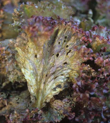 Microdochium panattonianum est le champignon responsable de l'anthracnose. Il est à l'origine de taches se développant en particulier sur les feuilles basses des salades, à la fois sur le limbe et les nervures. Les portions du limbe affectées brunissent assez vite, se nécrosent et tombent. Les feuilles montrent alors de nombreuses perforations leur conférant un aspect criblé très caractéristique (figures 1 et 2). Ce symptôme est dénommé "Shot hole" par les Anglo-Saxons.