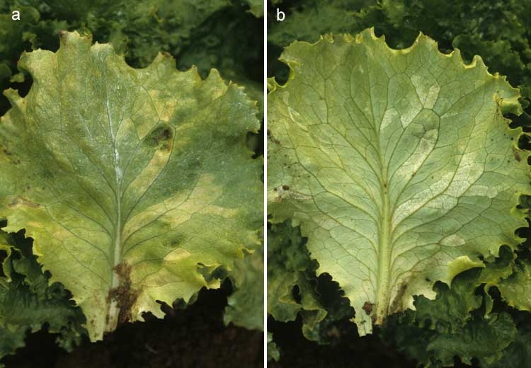 Attention : bien que de nombreuses variétés de laitues soient résistantes à B. lactucae, des souches capables de contourner ces résistances (des races) sont présentes sur le terrain et en perpétuelle évolution. Des symptômes de mildiou peuvent donc être observés sur un tel matériel végétal.