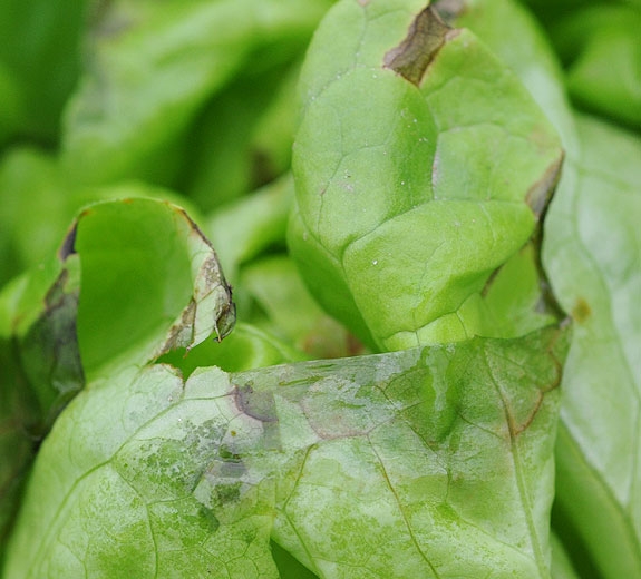 Under the name marginal necrosis or tipburn are grouped two types of abiotic problems (physiological or non-parasitic) affecting lettuce grown in soil, as in soil. They are manifested by necrosis starting at the periphery of the leaves of the heart or the crown of salads, and whose expression seems to be linked to the combination of genetic and environmental factors, more or less in relation to calcium and in particular its transport in plants.