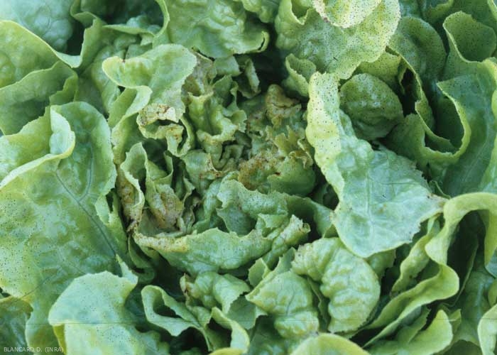 To observe this problem on salads with “closed” apples, it is necessary to cut the apple. Rather, it manifests itself as salads approach maturity. At this stage, the leaves of the heart protected by those of the crown, and therefore less ventilated, are more humid.