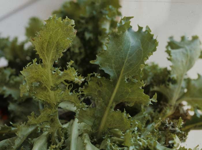 Symptoms are particularly noticeable in actively growing plants; they are generally more characteristic and more pronounced in butter, romaine or leaf lettuce varieties than in batavia or iceberg types (Figure 5).