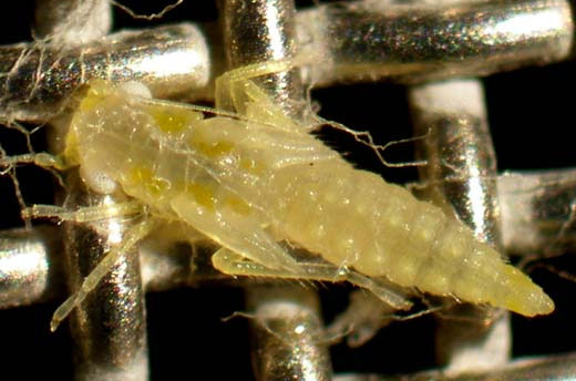 • The eggs hyaline are laid in leaf tissue completely spread out along the main veins. They are elongated in shape and are approximately 0.7mm long. They are very difficult to observe.