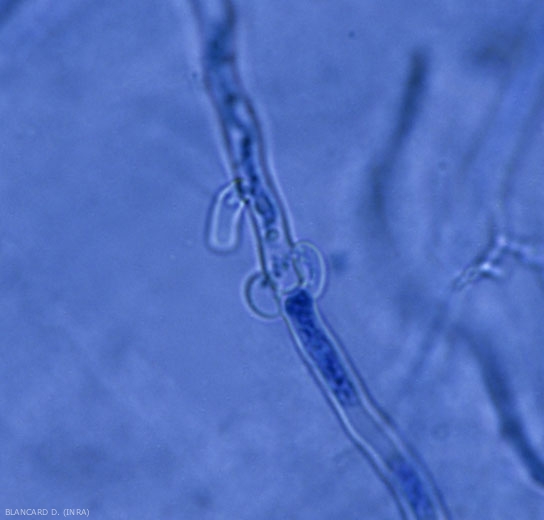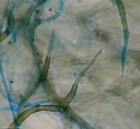 - The conidiophores are simple and cylindrical, brownish-green in color and thick-walled at their base, their color is lighter at their tip. They are surmounted by a conidiogenic cell (phialide) lighter, ampouliform and elongated, terminated by a collar (figures 1, 2 and 4). The conidia are subhyaline, oblong-ellipsoid obovate to right, grouped in glomerulus. They measure 3-4 x 1-1.5 micrometers (Figure 2). Of chlamydospores globose to sub-globular (Figure 3), olive to dark green (7-15 micrometers long), isolated or in short chains are formed in more or fewer depending on the strains.