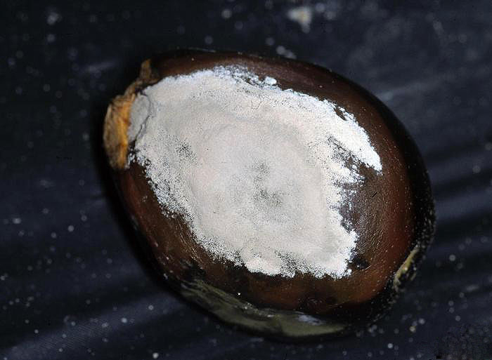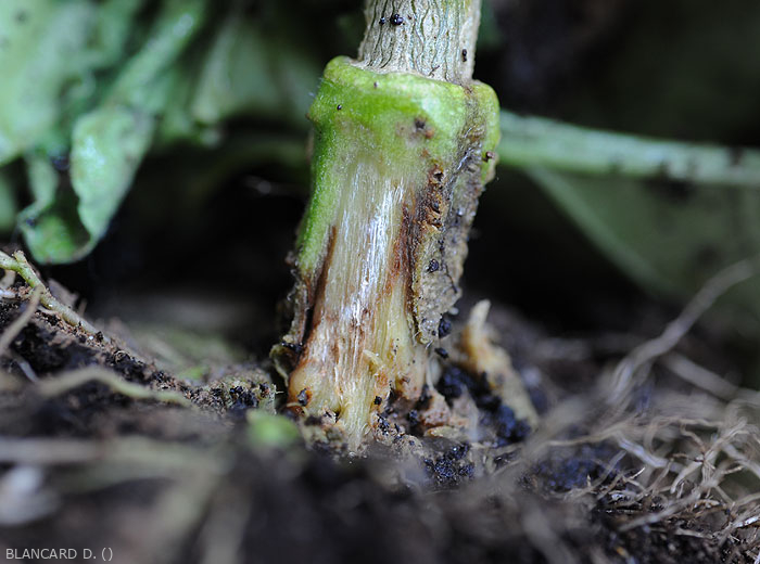 - Signs : white cottony, airy mycelial felting more or less covering lesions in humid conditions. Sporangia, oospores, chlamydospores can be observed with a light microscope in degraded tissue.