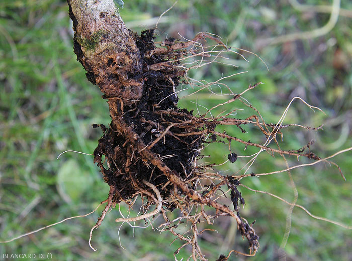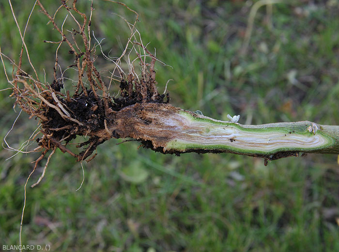 - Browning and / or rotting of taproots and lateral roots in soil and in soil ( root rot ). Browning, decomposition and disappearance of rootlets and roots of small diameter. The cortex of the main roots and the taproot also eventually rot more or less locally. The vascular tissues opposite the altered areas eventually turn brown (xylem).