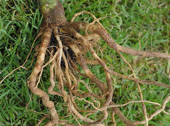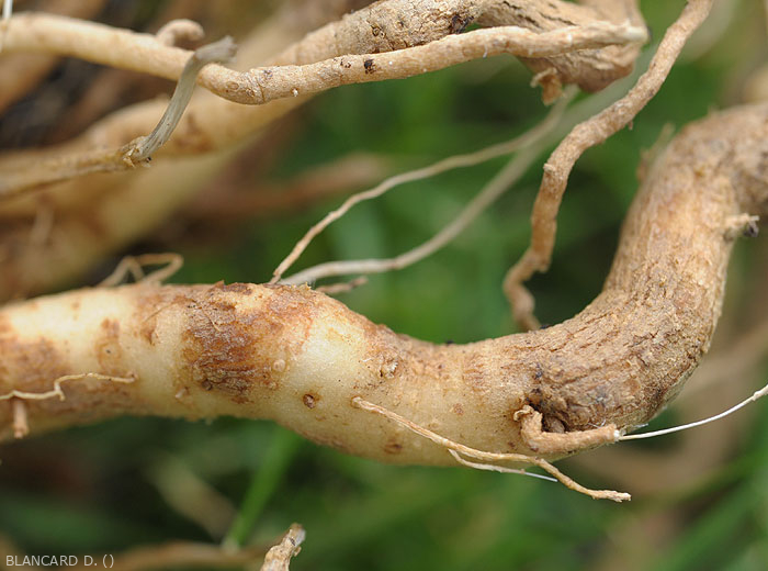 The roots locally reveal brown and smooth changes at first, then they become superficially corky; A few slightly swollen, cracked and dry-looking sleeves then appear (figure 3).