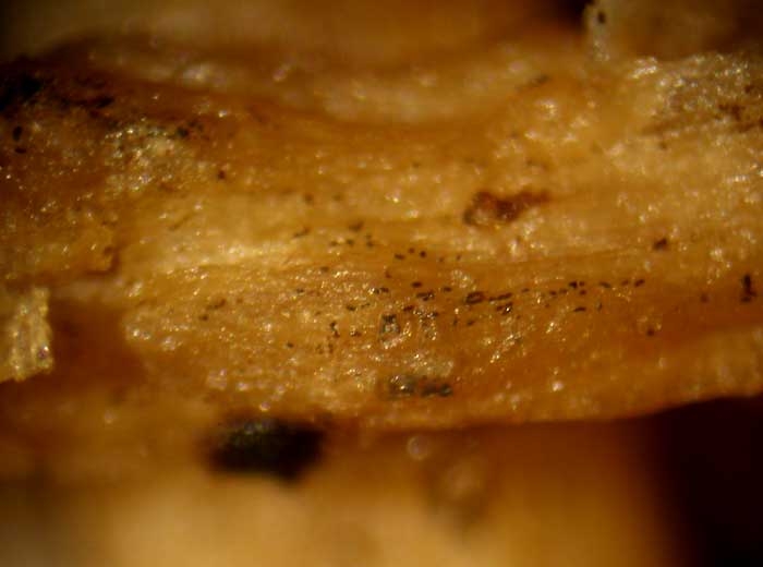 - Development, sporulation : it rapidly colonizes the tissues of the cortex and the vessels that it causes to rot. In damaged tissues, it produces numerous chlamydospores. It also forms on the surface of the roots, along with a multitude of endoconidia.