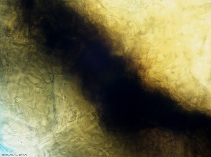 It seems that it settles on the root system through the rootlets that it colonizes before reaching the roots. Its mycelium (figure 7) gradually invades the tissues of the cortex which eventually decompose and disappear as well as the central cylinder.