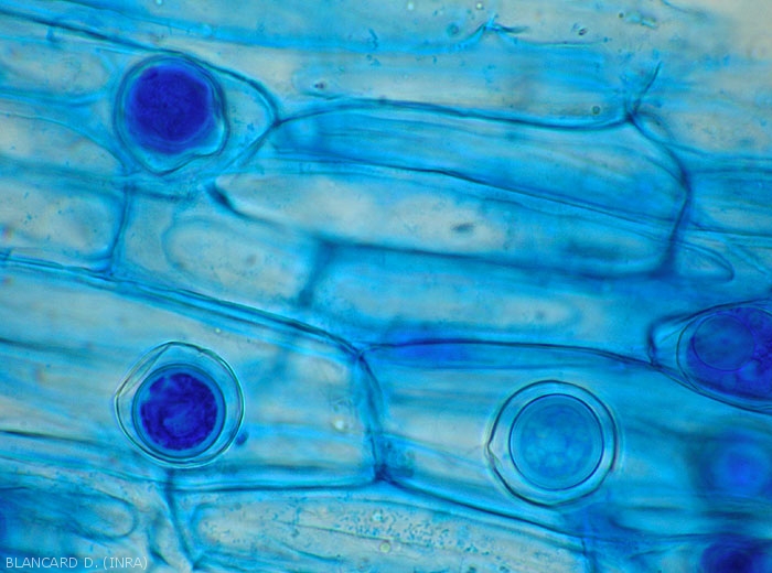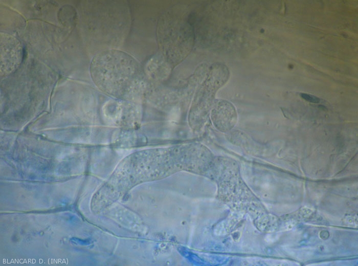 - Signs : various structures depending on the fungus or oomycete responsible (mycelium - figures 7 and 8-, sclerotia, oospores - figure 9 -, sporangia, etc.).