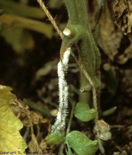 It is not uncommon to observe on senescent tissues of tomatoes grown under cover (at the level of snags of stripping or disbudding wounds, of leaflets in the process of decomposition ...) the presence of a white mold. (figure 1). The latter is in fact made up of a multitude of long aerial conidiophores belonging to Botryosporium sp. , a fungus which appears to be a simple saprophytic colonizer of senescent tissues, causing no harm to the tomato.