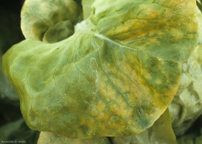 Des symptômes de plusieurs viroses ont été intégrés dans cette partie. Les risques de confusions entre virus étant importants sur salade, nous vous conseillons donc de faire réaliser un test sérologique ou moléculaire par un laboratoire spécialisé, afin d'identifier avec certitude le ou les virus responsables.